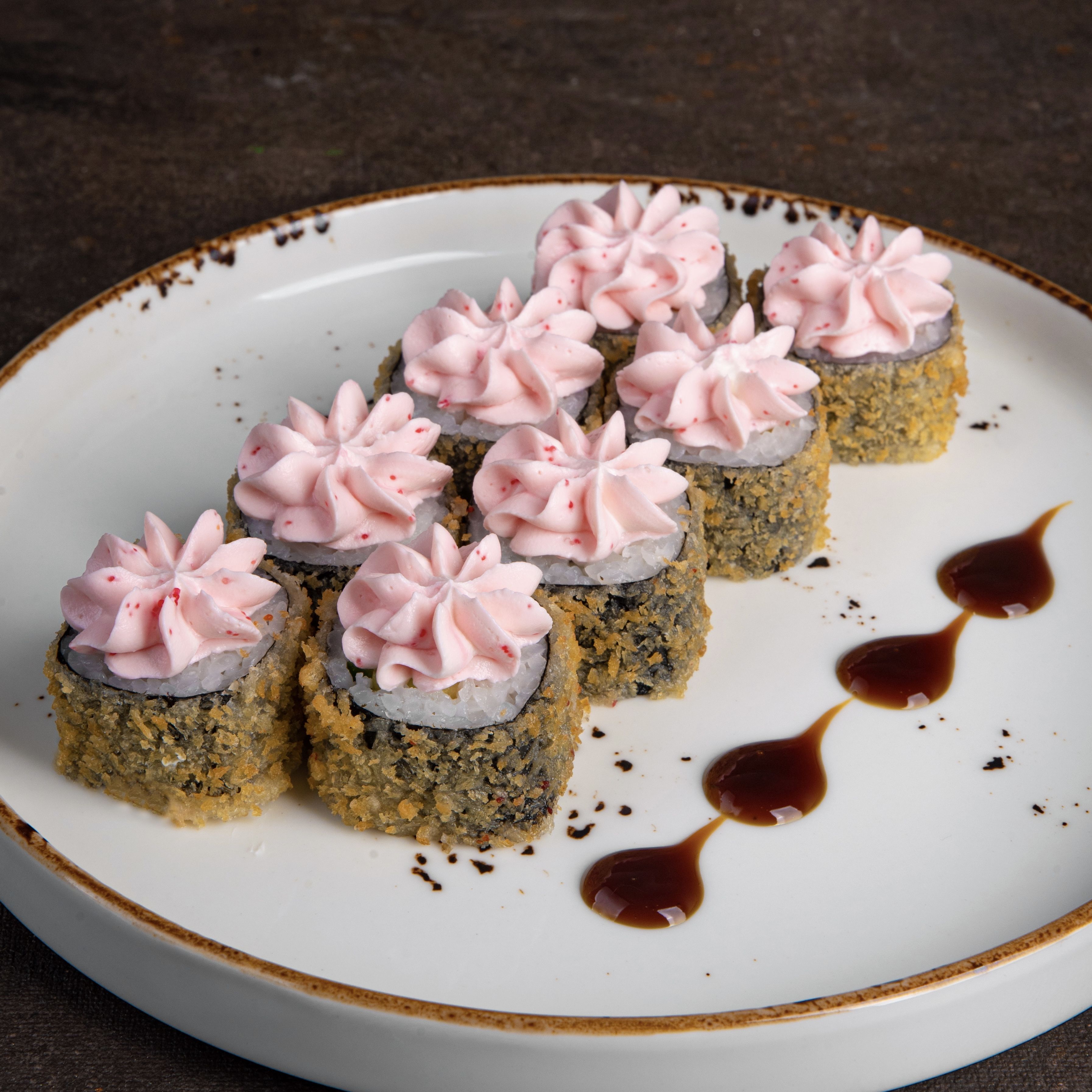 Тигровая креветка, сливочный сыр, икра масаго, свежий огурец